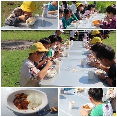 おいしいカレーライスができあがりました 公開日 2025/10/10 更新日 2025/10/10 自然教室 おいしいカレーができあがりました。晴天のもと、みんなでカレーライスをいただきました。おかわりをたくさんして、あっという間になくなりました。