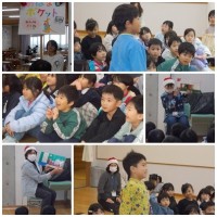 本日は…… わくわくするこの季節、サンタの帽子をかぶり、雰囲気を出して読んでくださいました『ねすごしたサンタクロース』や、身近なバナナのことを、どれだけ知っていたかな?『バナナのはなし』、他にも「星の金貨』『まじょがかぜをひいたらね』『ノラネコぐんだんきしゃぽっぽ』『じいちゃんバナナばあちゃんバナナ』『100人のサンタクロース』などの本を読んでいただきました。笑い声が響いている学級もあり、寒い朝でしたが、ポケットさんの読み聞かせが、よいウォーミングアップにもなっているようです。