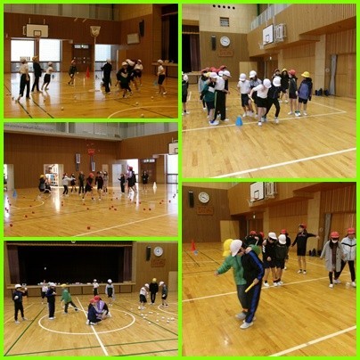 体育館では、玉入れ、二人三脚、借り物競争を行いました。とても白熱した戦いが見られました。