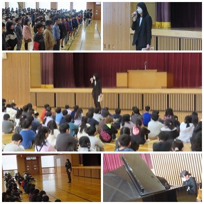 2学期の終業式は、感染症予防のため、ふだんよりも間隔を広くとり、落ち着いた雰囲気の中で行いました。冬休みの生活について、健康と安全を第一に過ごすことを全校であたらめて確認しました。