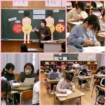 ふしぎなレンズで見てみたら?(3年生) 公開日 2026/01/15 更新日 2026/01/15 3年生 保健の授業では、保健室の先生から身体のつくりについて教わりました。子どもの体から大人の体になる準備を始めると、体内で新しい命を育てる大切な働きをするようになることを知ったり、男の子と女の子の体のつくりの違いについて考えたりしました。