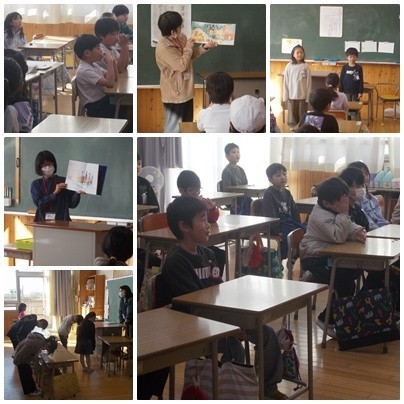 朝の読書の時間、低学年の各教室で『おはなしポケット』さんの読み聞かせがありました。