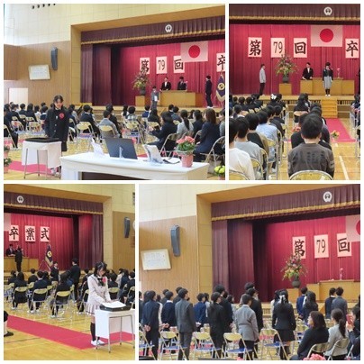 本日、多くの保護者や来賓の方々に見守られながら、第79回卒業式を執り行うことができました。
