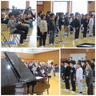 卒業式のあとの巣立ちのセレモニーでは、在校生代表として参列した5年生と卒業生との言葉と合唱による掛け合いがあり、感動的な時間が流れました。卒業生の思いを引き継ぎ、明日からは、5年生が最高学年として大口南小学校を力強く引っ張っていってくれることと思います。