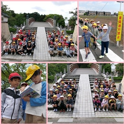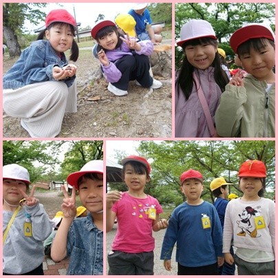今日は生活科の時間に2年生といっしょに堀尾跡公園にいきました。向かう際には交通ルールに気をつけて、普段みんなが通っている通学路を歩きました。堀尾跡公園につくと、2年生のお兄さんお姉さんにどんな植物なのか、どんな生き物なのか教えてもらいながら春の自然に親しみました。