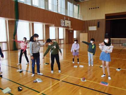 自然教室に向けて、キャンプファイヤーの練習をしました。「燃えろよ燃えろ」の歌を覚えたり、流れを確認したりしました。