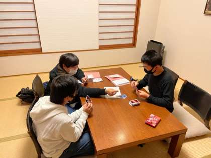 旅館に着いて、夕食を待っています