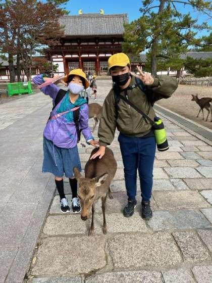 鹿と積極的に触れ合う子もいれば、怯えている子もいます。