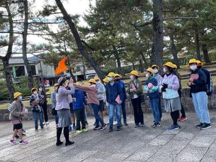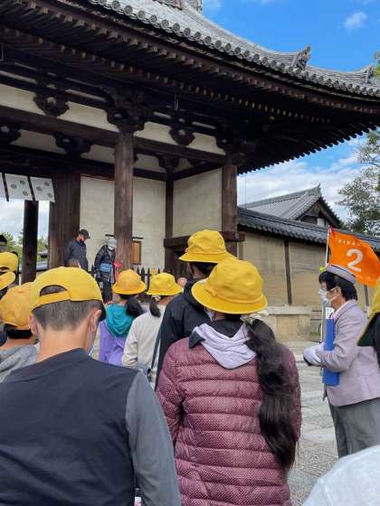 法隆寺の南大門から見学を始めます
