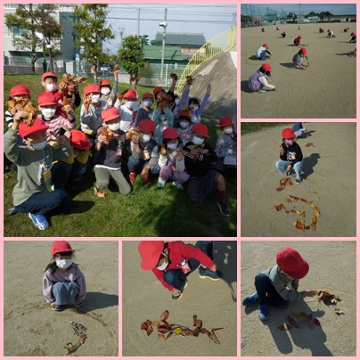 なかよし44(1年生) 公開日 2021/11/16 更新日 2021/11/16 みんなのようす 校庭で秋のはっぱを拾いました。 赤いはっぱ、黄色いはっぱ、大きいはっぱ、小さいはっぱ、虫食いのはっぱなど、すてきなはっぱを見つけました。 運動場に並べて楽しみました。 あきがいっぱいです。