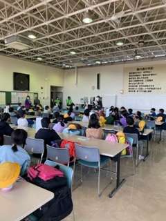 食堂でオリエンテーリングで見つけたものクイズを行いました。