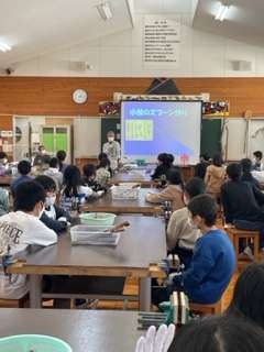 小枝のスプーンづくり開始です。 まずは説明を聞きます。