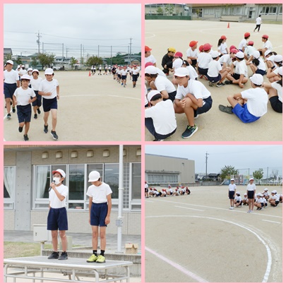 運動会に向けて、学年種目の練習です。号令をかけてくれるのは、運動会実行委員!笑顔で楽しく取り組もう!