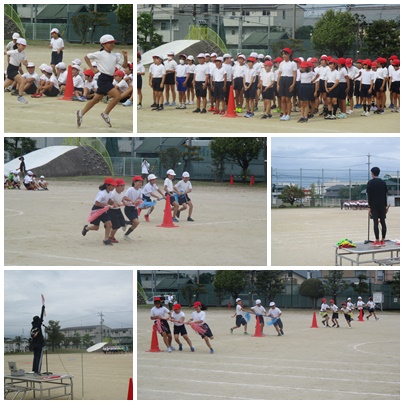運動会練習、がんばっています 公開日 2024/10/16 更新日 2024/10/16 学校紹介 運動会本番まで残り2週間をきりました。今日は、2年生(写真上段)と3年生(写真下段)の通し練習を見せてもらいました。両学年ともに、順調に仕上がってきています。本番が楽しみです。
