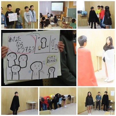 今朝は人権週間にちなんで、放送をしました。代表委員会の子どもたちが中心となり、人権に関するクイズや「まっくりネリノ」を題材とした人権劇を全校児童に向けて発表をしました。