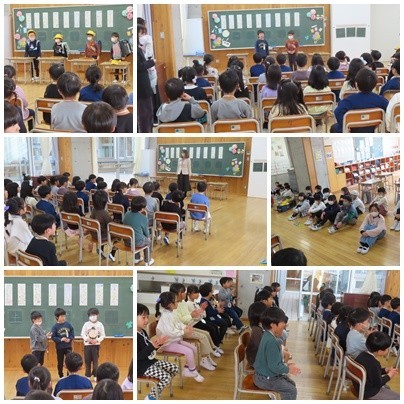本日、本校の体育館で来年度入学予定の新1年生を対象とした入学説明会を行いました。保護者の皆様の説明の間、子どもたちは1年生による「できるようになったこと発表会」を参観しました。少しでも「小学校に通いたい」という気持ちが高くなってくれればと思います。