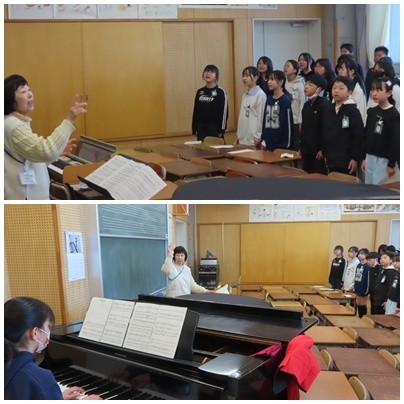 現在、6年生の子どもたちは、朝の業前の時間を使って、卒業式の練習に取り組んでいます。指揮者の合図に合わせて気持ちを一つにし、美しいハーモニーが広がっています。互いの声を聴き合い、心を込めて歌う姿から、成長と頼もしさが伝わってきます。卒業式当日、体育館に歌声が響き渡るのがとても楽しみです。