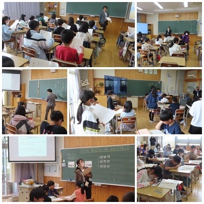 業前の時間に、転任された先生方からのビデオレターを全校で視聴しました。画面越しではありますが、お世話になった先生方から子どもたちに向けて、温かいメッセージを届けていただきました。