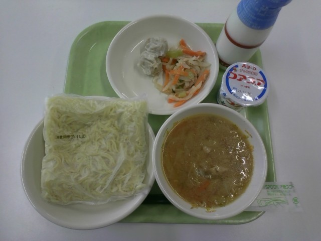 図書給食1日目の今日は、「ノラネコぐんだんラーメンやさん」「ぼくがラーメンをたべているとき」の2冊から、みそラーメンのメニューにしました。私たちがラーメンを食べている時、世界では何が起きているでしょうか?