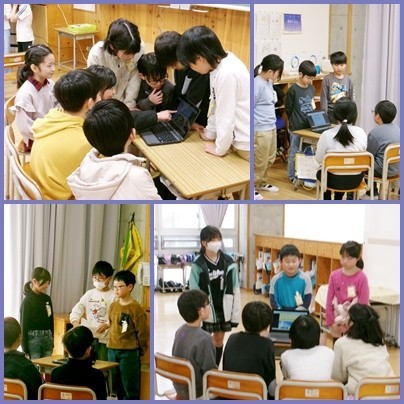 今日は、総合的な学習の時間で学んだことを2クラスで発表し合いました。