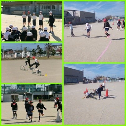 1つ目は障害物リレーです。なわとびやハードルなどさまざまな障害物を乗り越えながらバトンをつなぐリレーを行いました。