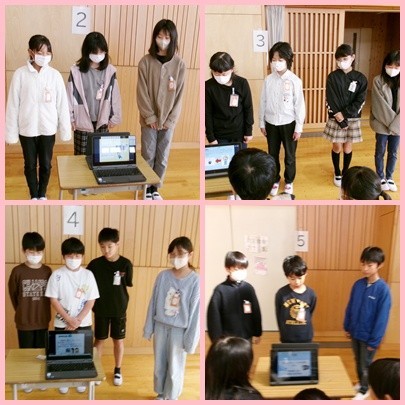 今日の総合的な学習の時間では、大口町役場の方をお招きして、「大口町の町づくり」についての提案を行いました。グループに分かれてそれぞれの提案をスライドを使って行うことができました。来週には4年生に向けての発表を行います。それに向けてよりよい発表ができるよう、練習や改善に取り組んでいきます。