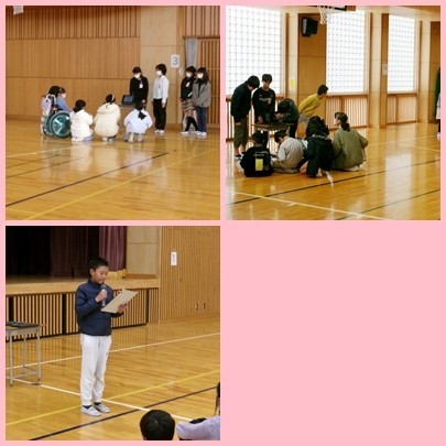 今日の総合的な学習の時間には福祉実践教室として車いす体験を行いました。車いすに乗っている方の話を聞いたり、支援をしている方の話を聞いたり、実際に車いすの体験をしたりして、介助する側や介助される側の立場に立ち、それぞれの思いを共感的に捉えることができました。