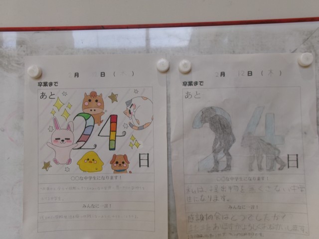 卒業まで残りわずかです。一日一日を大切にしてがんばっていきましょう。