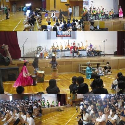 本日、芸術鑑賞会「おもしろ民族楽器 大集合パレード」が行われました。様々な伝統楽器や世界の楽器を紹介してもらいました。楽器の名前、形や音色などを詳しく説明してくださいました。子どもたちの馴染みのある曲もたくさんあり、演奏を聴きながら手拍子をして歌っている姿が印象的でした。