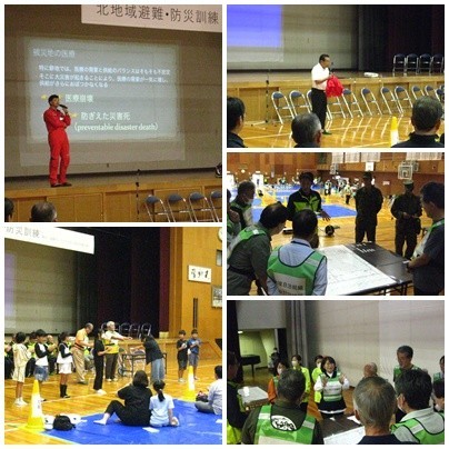 18日(土)の午前に、北小学校において、北地域自治組織による避難・防災訓練が行われました。