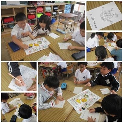 そこで,自分たちでサイコロをふり,モンスターを完成させました。