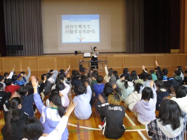 講師の方をお招きし、ネットモラル教室を行いました。「今、自分のスマホを持っている人ー?」という質問に、約半数の児童が手を挙げ、今ではスマホを使うことが大人子ども関係なくふつうになってきていると感じました。だからこそ、ネットを正しく使うことを学ぶいい機会となりました。ここ最近、ネットによる犯罪が問題視されています。ご家庭でもスマホやインターネットの使い方を子どもたちと確認してほしいと思います。