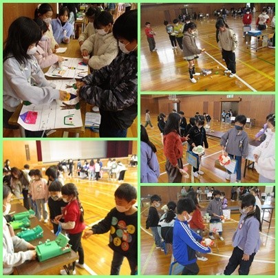 2年生が生活科の学習で作った手作りおもちゃを,体験させてもらいました。遊び方を説明してもらい,いろいろなおもちゃを楽しそうに体験することができました。子どもたちはまだまだ遊びたかったようで,「もう1時間ほしい!」と名残惜しそうでした。