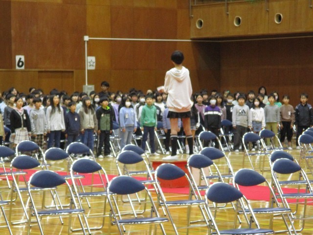 本日、卒業式の予行練習に参加しました。緊張感を保ちながら、真剣な顔つきで話を聞いたり、6年生のために気持ちをこめて合唱をしたりしました。6年生の姿勢や合唱の様子を見て、6年生のたくましさを学び、いつか今の6年生に追いつけるようにがんばりたいとも言っていました。卒業式本番でも、今日のような姿勢で臨んでほしいと思います。