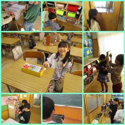 図画工作の学習で,すきまちゃんというものを作りました。小さくてかわいいすきまちゃん。子どもたちは自分たちで体の色を決め,顔をかきました。完成したすきまちゃんを,教室のいろいろなすきまに置いて楽しみました♪いろいろな場所に置かれたすきまちゃんをタブレットで写真を撮り,後日,「わたしはどこでしょう?」クイズをしてみんなに探してもらう予定です。