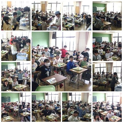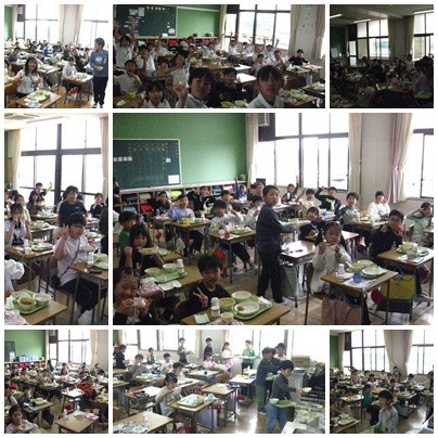 給食の準備や片付けも順調に進み、どの教室もしっかりと食べることができたようです。