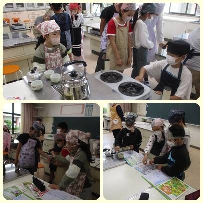 教室の使い方を聞いたり,必要な道具について聞いて集めたり,コンロの使い方を教わったり。そしてその後,お茶作りをしました。みんなで協力して作ったお茶,おいしかったかな?ぜひまたお家でも復習できるとよいですね。