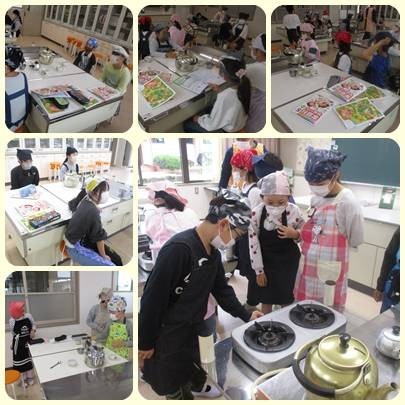 今日は初めての家庭科室で,初めての調理実習を行いました。