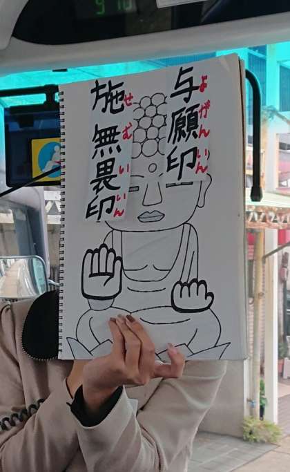 まもなく東大寺に着きます。バスの中では、大仏の学習をしています。
