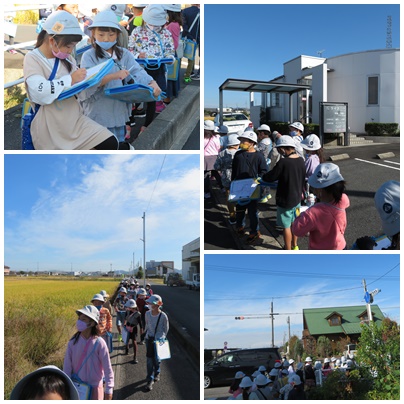 今日もお天気に恵まれ、2回目の町たんけんへ行ってきました。今日は、下小口地区を中心にまわりました。広い道は車通りが多く、狭い道は上小口コースの時よりも、ミラーがたくさんあることなどに気付きました。