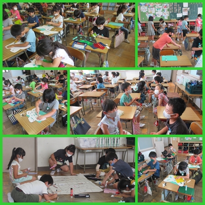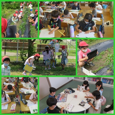 すくすく育つ野菜を、タブレットで写真を撮って記録したり、町探検で見つけたものをもとにして、大きな地図作りを行ったりと、生活科もがんばっています。