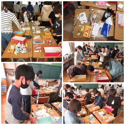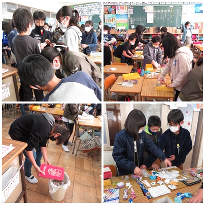 身の回りにあるものがきちんと整理されているか、抜き打ちでお道具箱チェックをしました。机の中から出したときは、どの班からも「うわあ・・・」と声があがりました。自分が思っていた以上に、必要のないものが入っていたようです。中身を全て出し、捨てるものと残すものに分けて整理しました。年末の大掃除に向けて、少しでも使いやすく整理できるように学習していきたいと思います。