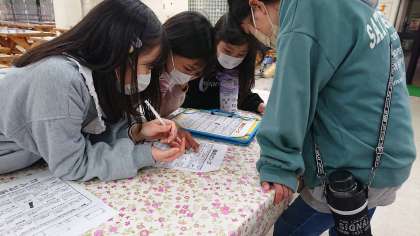 Bグループが、館内展示ビンゴの答え合わせをしています。