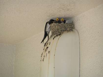 「ツバメの赤ちゃんが鳴いてるよ」の児童の声を聞いて見上げると、親鳥がせっせと餌を運んでいました。ヒナたちは口を大きく開けて、餌をもらっていす。ツバメのヒナの成長を4組の児童たちは楽しみにしています。