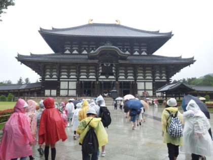大仏さまの鼻の穴と同じ大きさの、大仏殿の柱の穴をくぐり抜けた人もいました。良いことがあるかな?