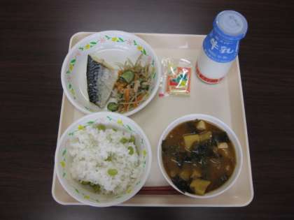 枝豆ご飯は、北海道の十勝平野で収穫された枝豆をご飯に入れました。緑色の枝豆がとても鮮やかで食欲をそそります。枝豆は枝豆専用の大豆を完熟前に収穫した未熟豆です。たんぱく質が豊富で、特に大豆にはないビタミンCを多く含んでいます。