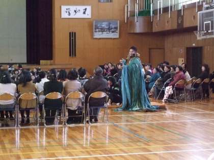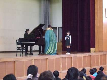 21日の午前に芸術鑑賞会があり,岡本知高さんをお招きして,ソプラニスタ・コンサートを開催しました。全校児童に加えて80人を超える保護者の方にも参加していただき,素晴らしい歌声を聴くことができました。最初と2枚目の写真はコンサートの途中に,岡本さんがいきなり会場の後ろから現れ,歌いながら児童の中に入られた場面です。児童が少し興奮しすぎた所もありましたが,楽しいふれ合いの場にもなりました。最後の写真は児童代表のあいさつです。岡本さん,心に残るコンサートをありがとうございました。