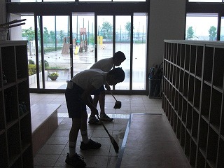 東脱履の掃除は6の3が担当しています。先週の木曜日、金曜日の強風で東脱履の廊下にはかなり砂が入ってきました。子どもたちはそのたびに一生懸命掃除をしてくれていました。今日もよく取り組んでいました。