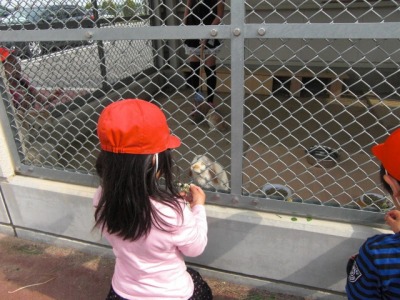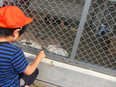 子ウサギは元気に成長しています。子どもたちがウサギ小屋に近づくとよってきます。