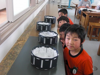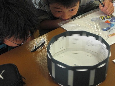 5の1、5の2はゾートロープでアニメーションをつくっています。下書きで作成した絵をゾートロープにセットして、動きが見えているか確認しています。